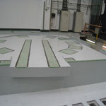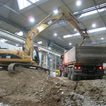 Neuerrichtung von einem Maschinenfundament in einer bestehenden Produktionshalle unter laufendem Betrieb.